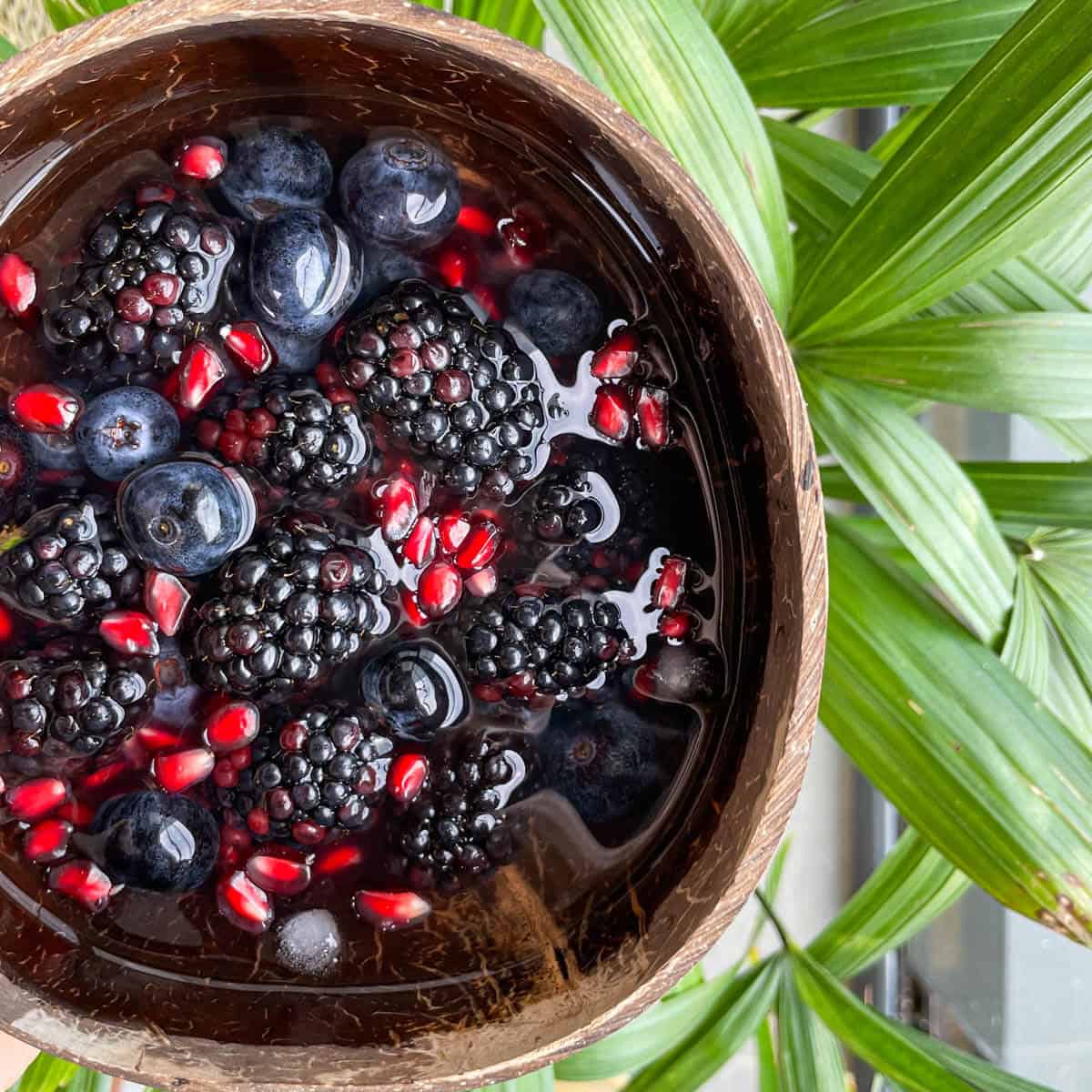 A refreshing, healthy “cereal” made from berries, pomegranate seeds, and coconut water. It’s a great breakfast or snack for a burst of natural sweetness.